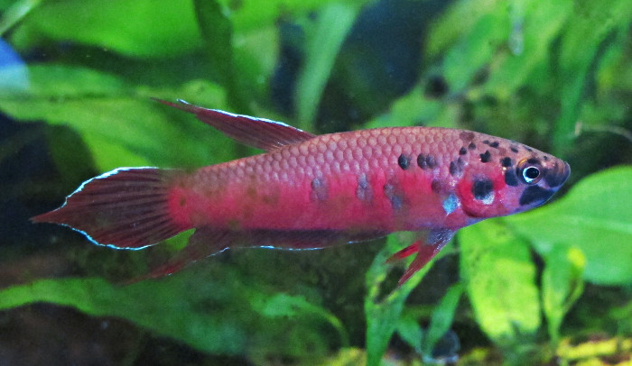 unpaarigen Flossen ist für mich Betta rubra eine der farbintensivsten Wildformen, die ich je gehalten habe. Die Schwanzflosse ist bei meinen Tieren bei den Männchen spatelförmig, bei den